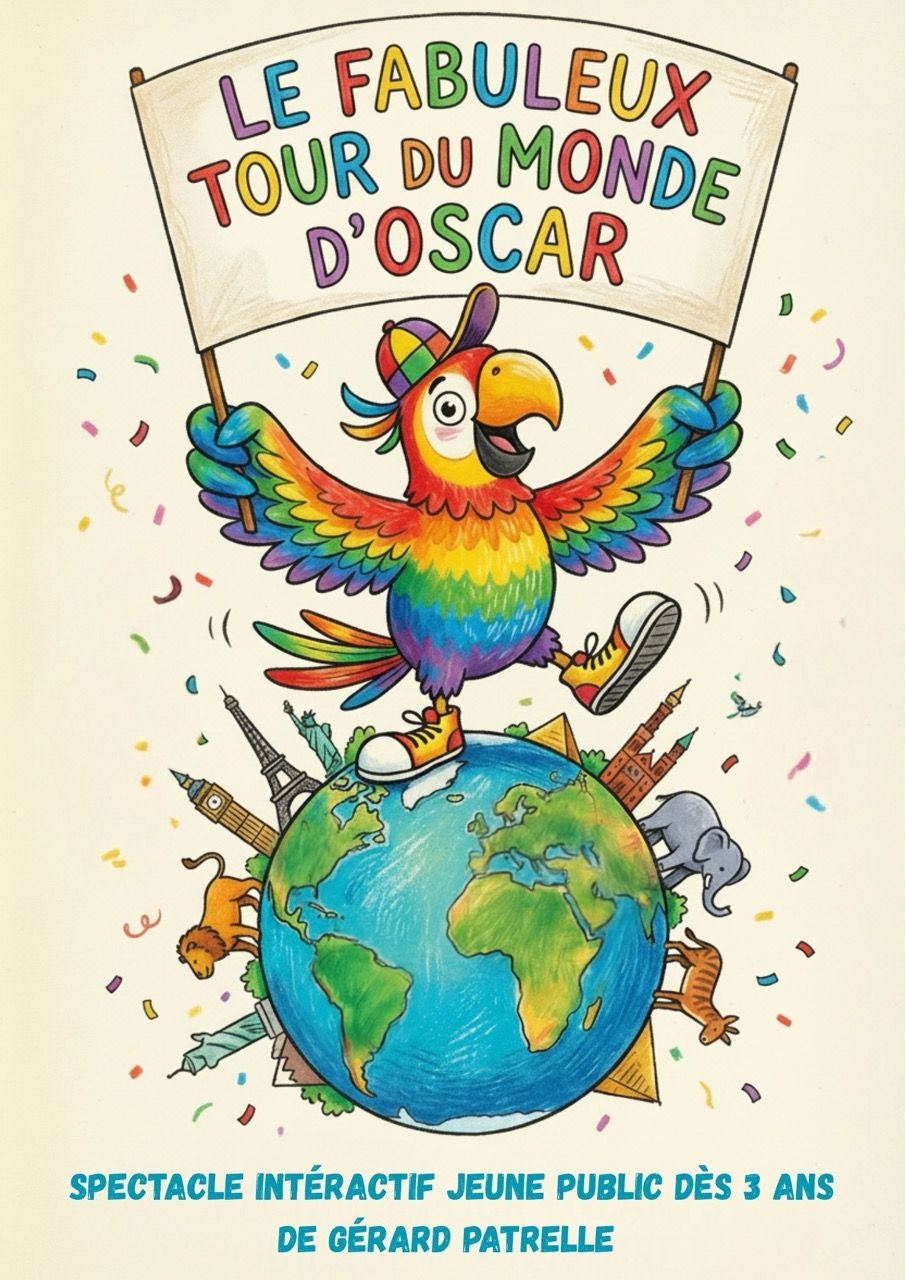 Il nous entraîne dans un tour du monde à la découverte de pays plus fabuleux les uns que les autres. Alors, accrochez vos ceintures, Oscar, le perroquet nous embarque pour une aventure comique et haute en couleur pour un dépaysement garanti !
